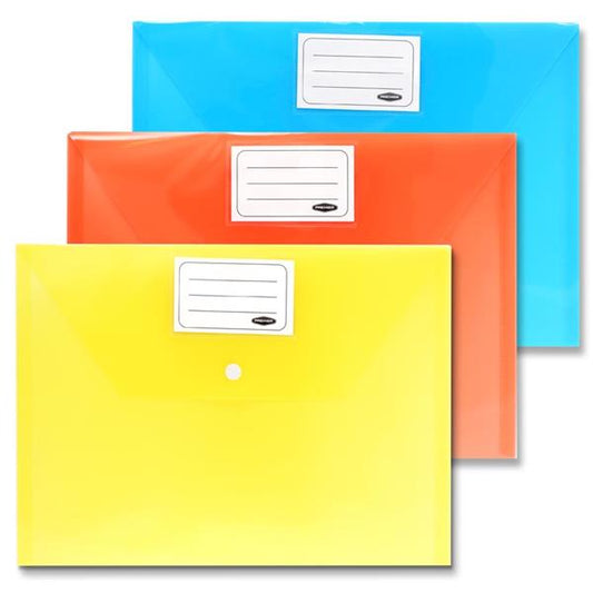 Neon 3pk A4 Button Document Wallets