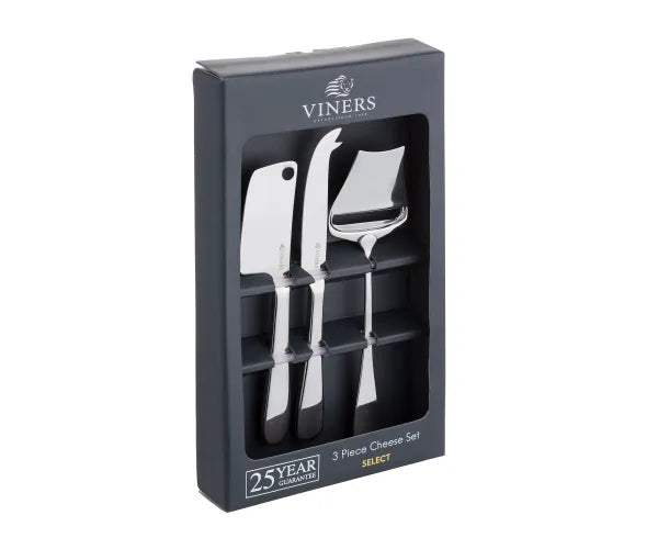 his set includes: 1 x Pronged Cheese Knife, 1 x Hard Cheese Knife and 1 x Cheese Slicing Knife.