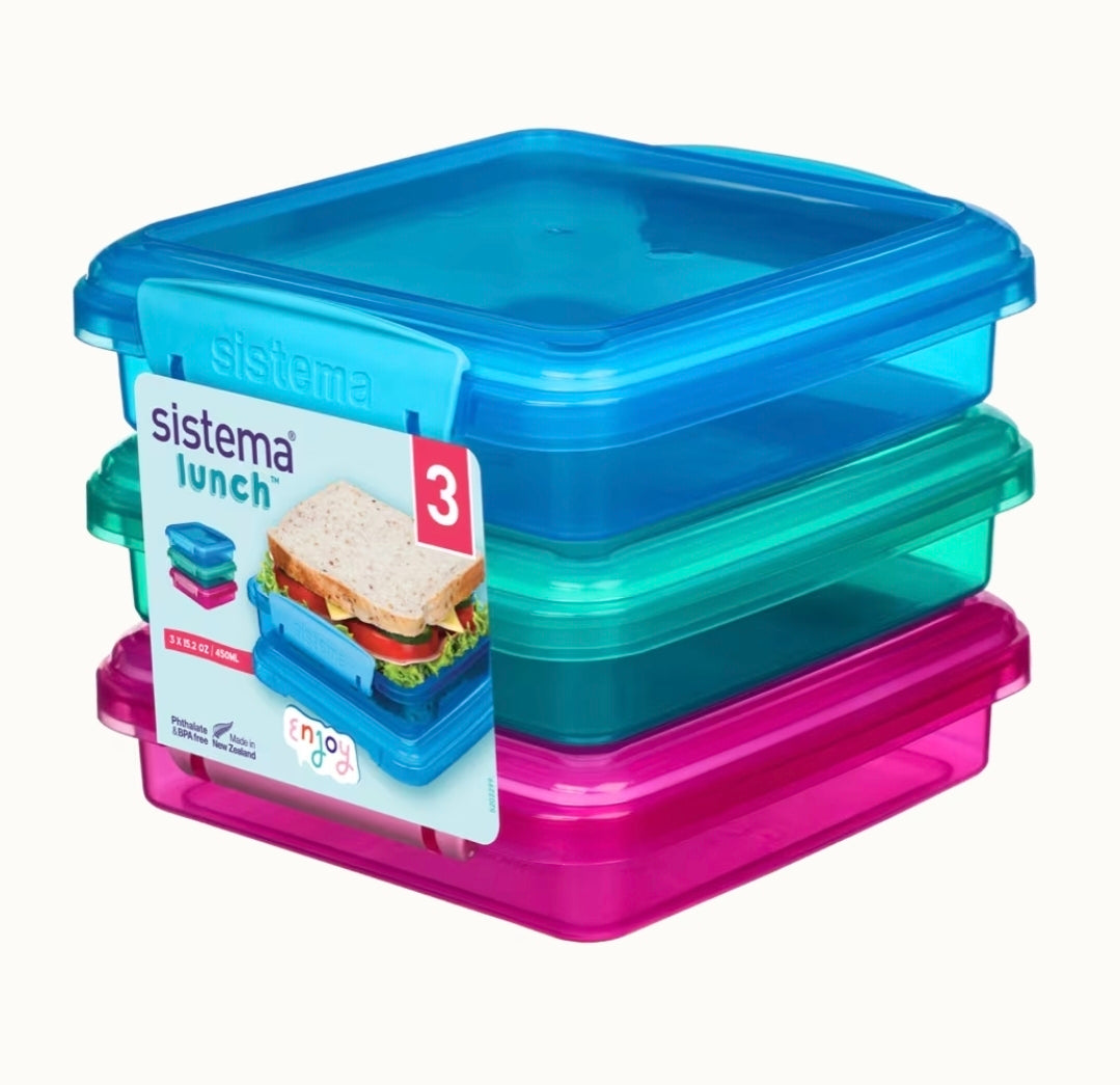 The Sistema® Lunch™ Sandwich Box 3 Pack is perfect for transporting your lunch and snacks to work, school or the park while helping to cut down on using plastic bags, cling film and foil.