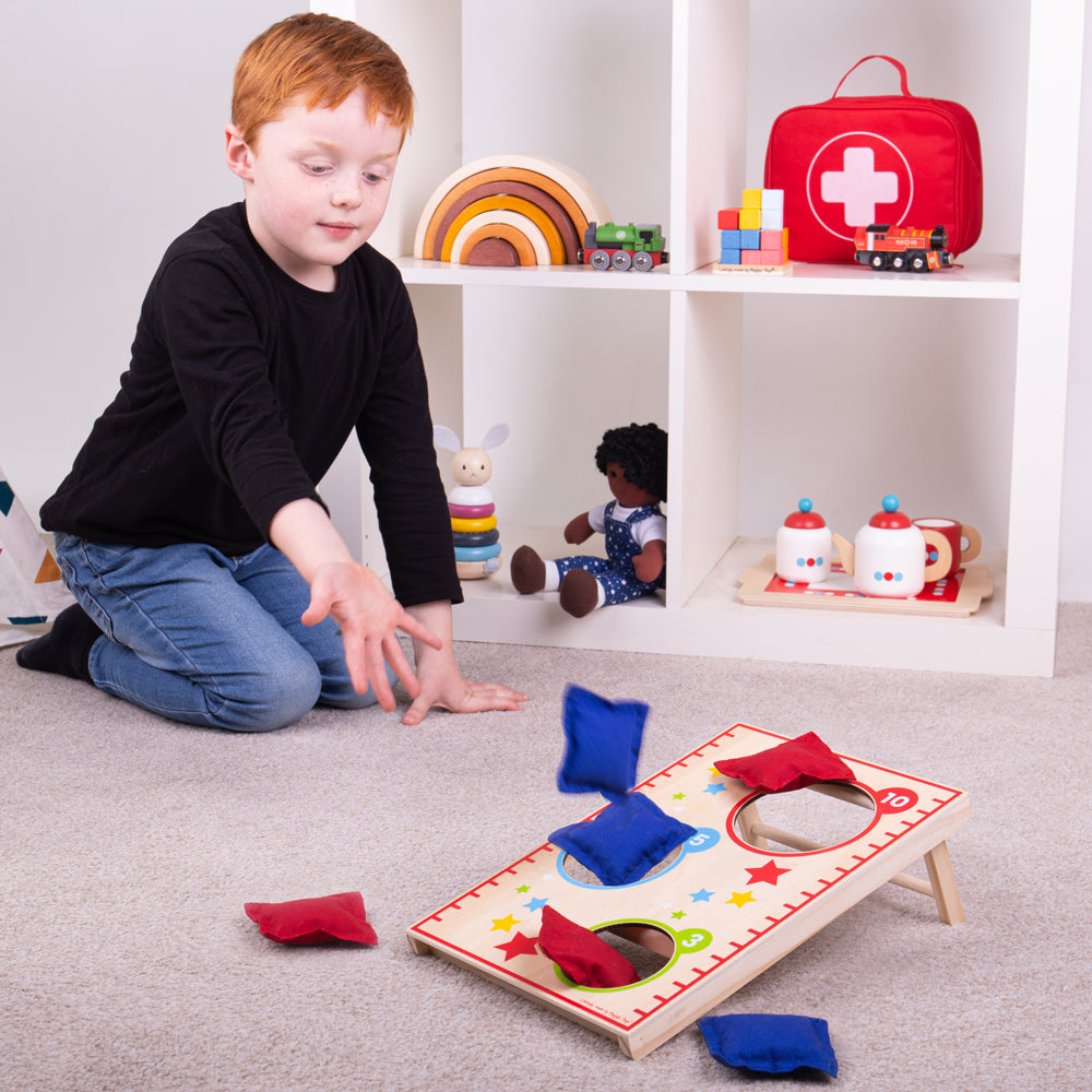 Comes with six beanbags and a scoring board. Made from premium-quality, sustainably sourced FSC® Certified wood and conforms to current ASTM F963 & European safety standards. Suitable from 3 years +.