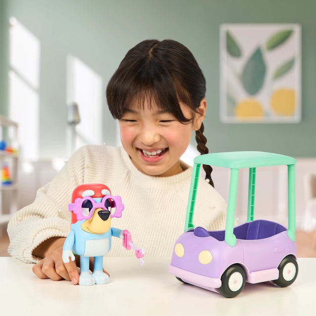 Janet (Bluey) comes to life with a press of her nose! Hear 10 fun, fan-favorite phrases, including some of her most iconic lines from the episode "Grannies"! At 5.5” (14cm) tall, she's the perfect size for little hands and has articulated arms and legs. The Grannies Car with Janet pack also comes with the Grannies car, Janet's glasses and grabber!