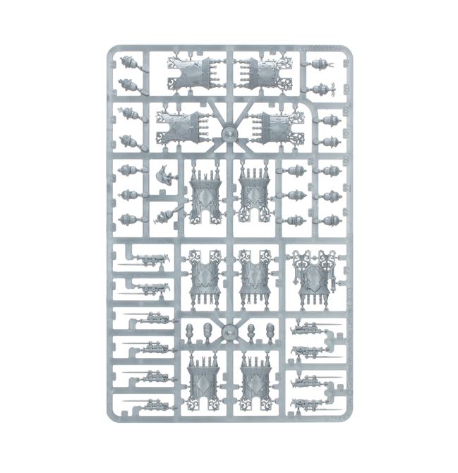 This kit comprises 115 plastic components, and is supplied with 10x Citadel 28.5mm Round Bases and 1x Citadel 25mm Round Base. Also included is a Cities of Sigmar Transfer Sheet, featuring 410 Free City icons, Sigmarite cult sigils, and other forms of heraldry.