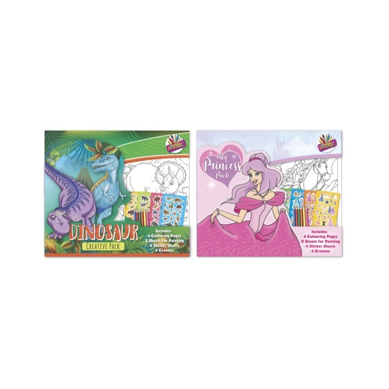 Includes 6 Colouring Pages, 2 sheets for Painting, 4 Sheets of Stickers & 6 Crayons 2 Asstd Designs