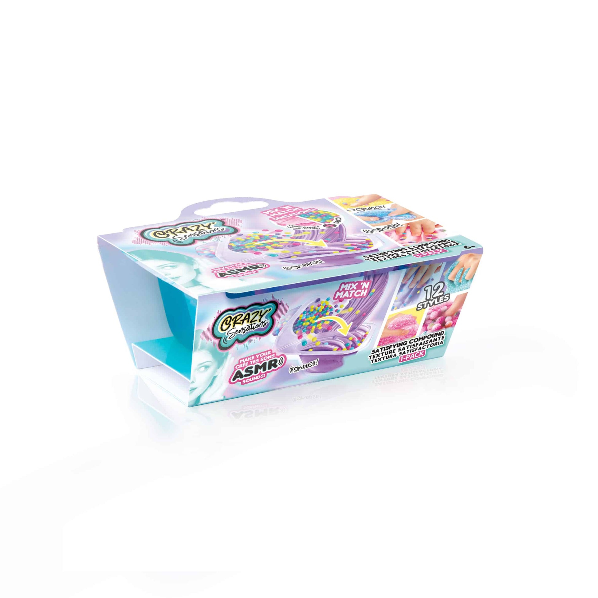 Open and discover a world of sounds and textures! Mix the decorations with the special compound to create uniquely satisfying sensations. Squish, pull and crunch and listen. There are twelve styles, see if you can collect them all! The special sensations provide feel-good vibes that are great for your well being