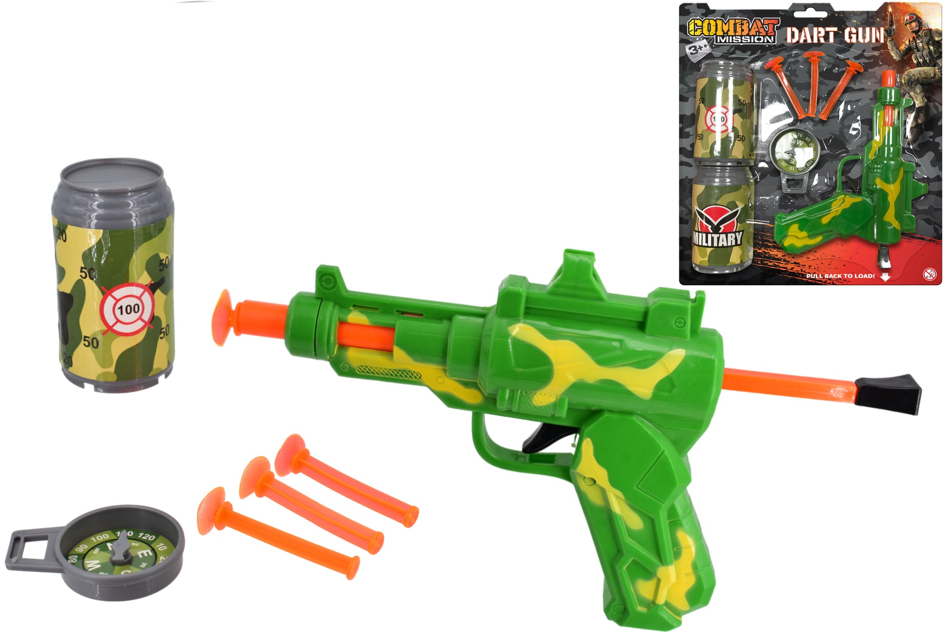 The Dart Gun Play Set is the ultimate toy for kids who love action and adventure. With two dart guns, target boards, and darts, this set provides endless entertainment for children of all ages. Kids can practice their aim and accuracy while competing with friends or challenging themselves to hit difficult targets. The durable plastic construction ensures long-lasting fun, while the bright colors and cool design make it a must-have for any young explorer. Let your child's imagination run wild with the Dart Gun Play Set!