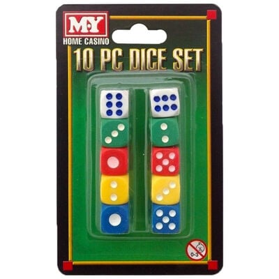 This pack contains 10 traditional 6-sided die in 5 colours, making it the perfect replacement for existing board games and card games at home.