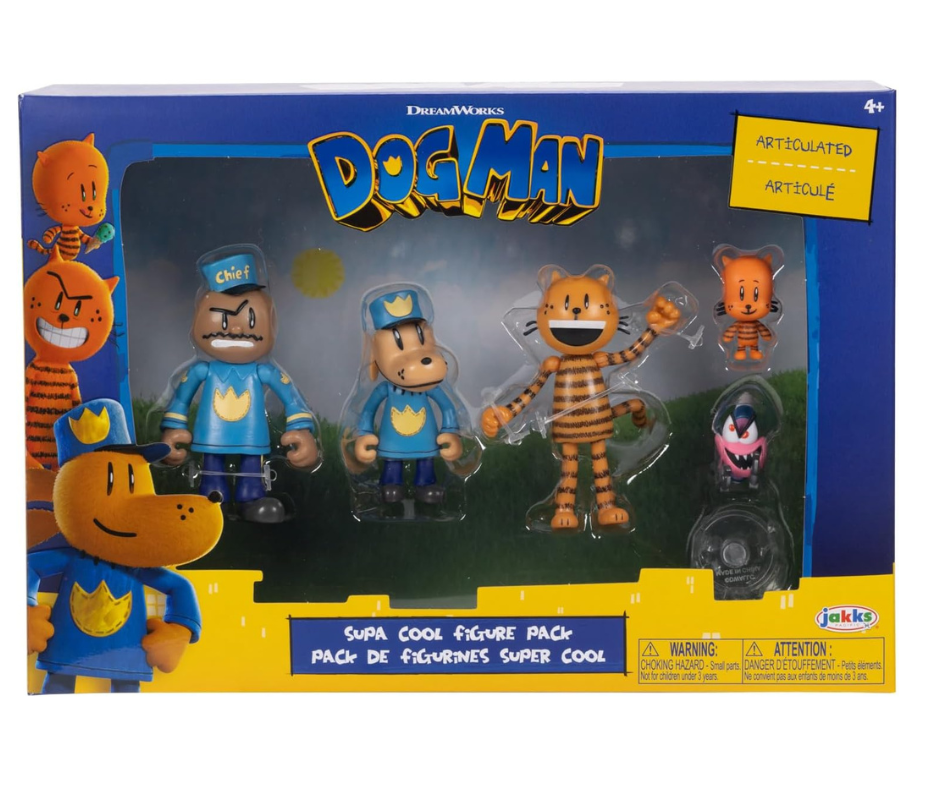 Part dog, part man, all hero! Get ready for non-stop adventure with the Supa Cool Figure Pack! This 2.5-inch figure multipack features all your favorite Dog Man characters, including Dog Man, Lil Petey, Petey, Chief, and Flippy. Each figure comes with 2-5 points of articulation, perfect for posing and bringing the world of Dog Man to life. Whether you’re recreating iconic scenes from the movie or making up your own, this set is a must-have for any fan. Collect them all and dive into the Dog Man universe!