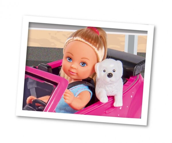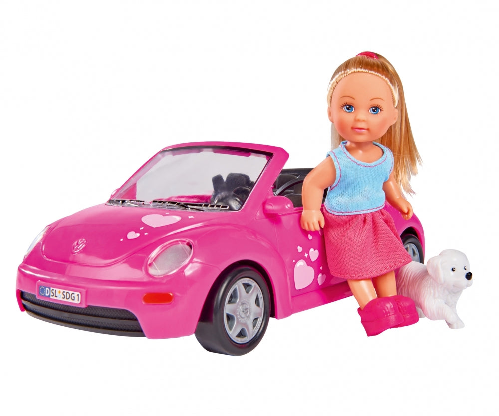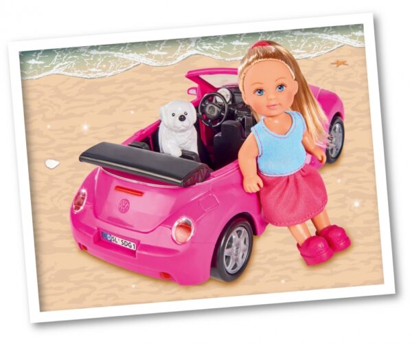 Be it in Paris, Madrid or Milan, there’s no stopping Evi’s pink New Beetle. Evi has also taken along her pet dog. And if she ever gets hungry, her picnic set is full of goodies.