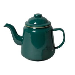This charming enamel teapot in green with a moss green rim is a delightful addition to any kitchen. With a capacity of 14cm, it's perfect for brewing your favorite teas. The sleek design and vibrant colors make it a standout piece for tea lovers.
