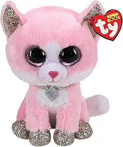 Fiona, the plush pink cat, has glittery feet and ears. They are only outshone by the sparkly necklace she wears. Truly sophisticated, this precious kitty will stand out in a crowd. Take this sweet girl home today.