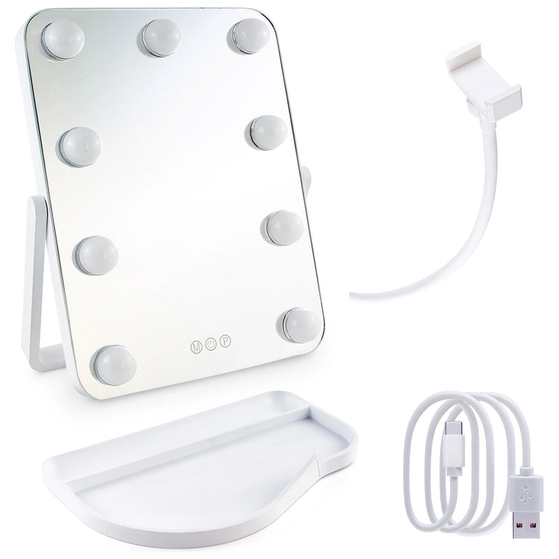 Contents: 1x Studio Creator Hollywood Mirror, 1x detachable tray, 1x phone holder and 1x USB charging cable