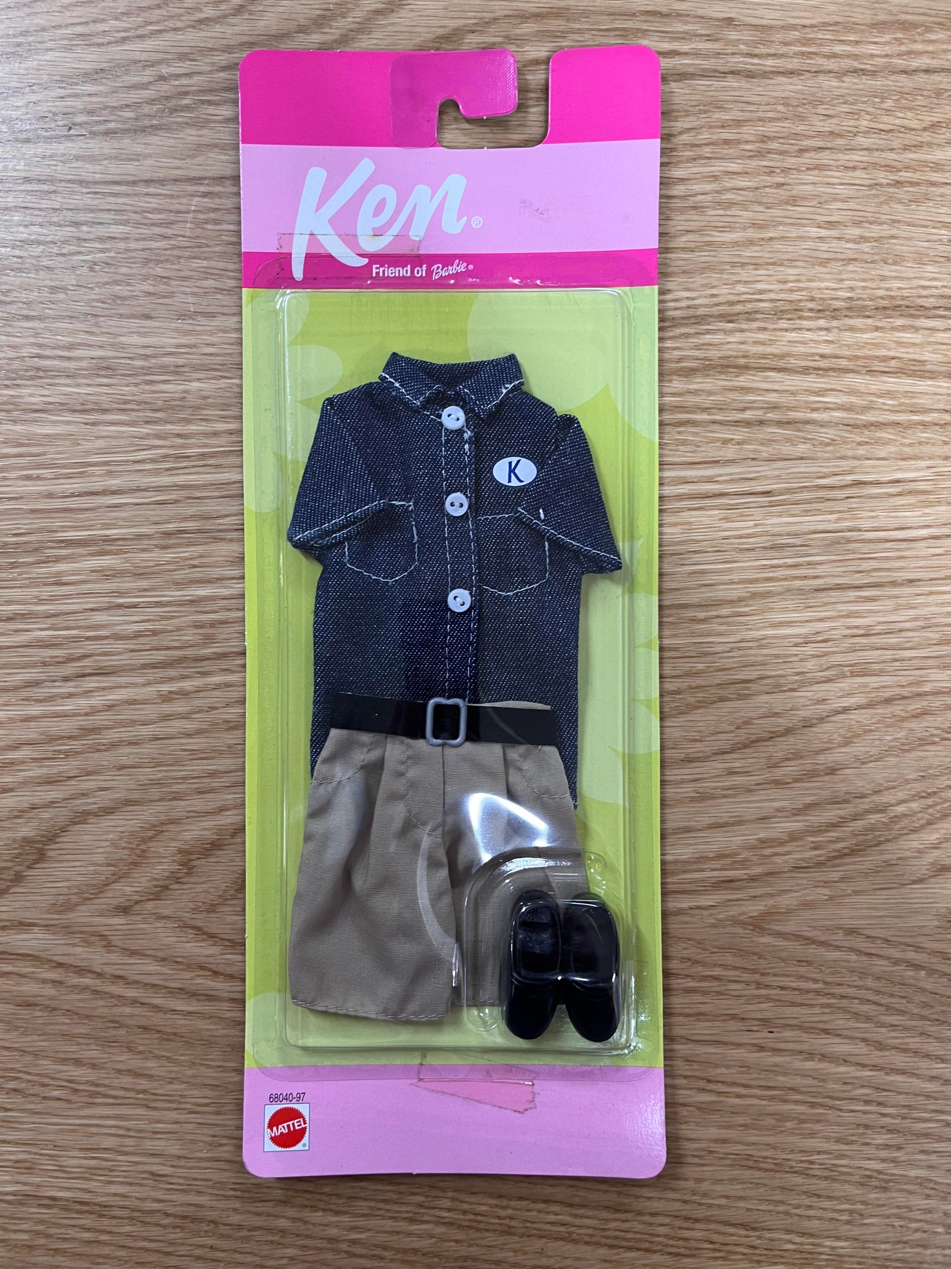 Elevate your wardrobe with this Ken Vintage Fashion Denim Shirt & Khaki Shorts set. The denim shirt is crafted from premium denim material, ensuring durability and a classic denim look. It features a stylish collar and button-down closure for easy wear. Paired with the khaki shorts made from high-quality khaki fabric, this outfit exudes a casual yet fashionable vibe. The khaki shorts have a relaxed fit and functional pockets, making them practical and stylish. Whether you're heading out for a day of errands or a casual gathering with friends, this denim shirt and khaki shorts set will keep you looking effortlessly cool and on-trend.