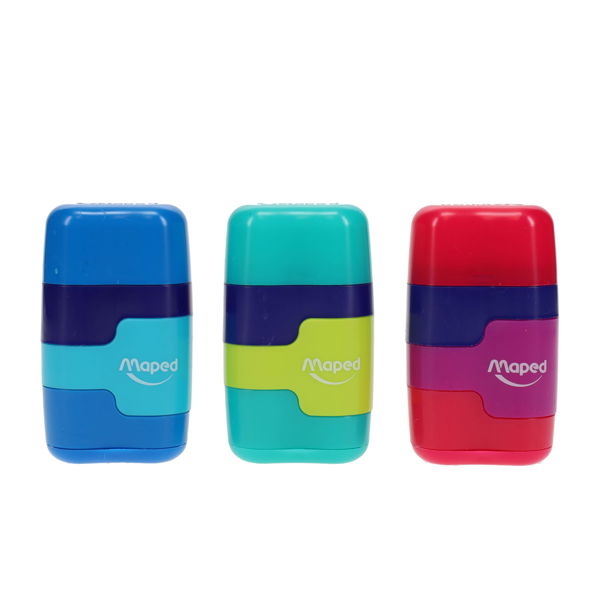 Duo Connect Twin Hole Sharpener & Eraser - 3 Asst