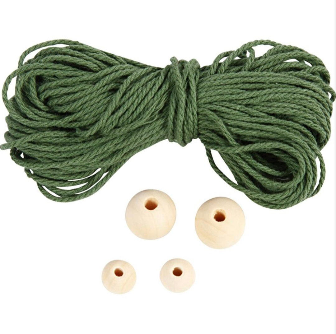 Contents: Green cotton twine, wooden beads. Instructions included. The size indicates the dimensions of the finished product.