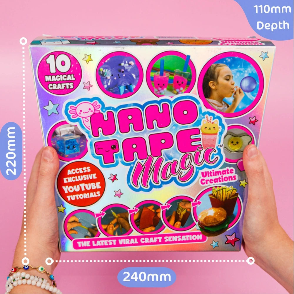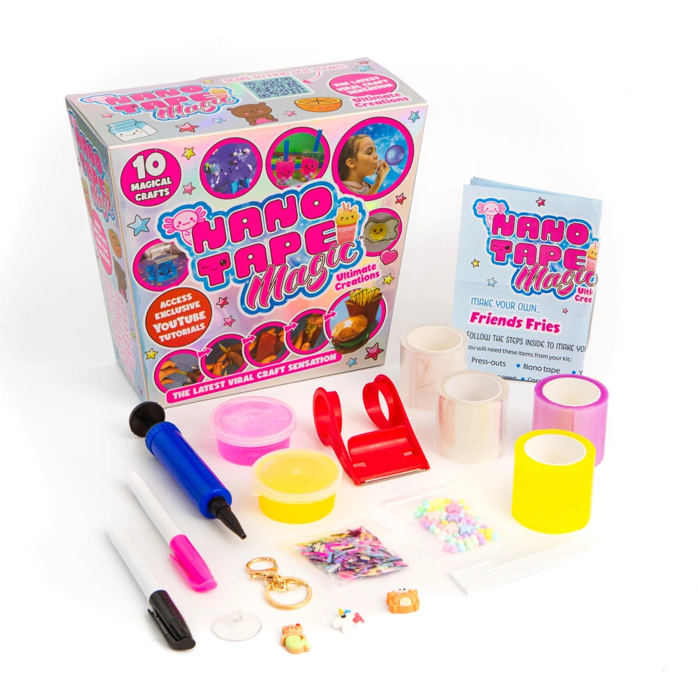 - Contents: 2x clear rolls of Nano tape, 1x purple roll of Nano tape, 1x yellow roll of Nano tape, 2x felt markers, 6x plastic straws, 2x press-out sheets, 3x kawaii animal charms, 6g of sprinkles, 1x pump, 2x ready-made slimes, 8g shaped sequins