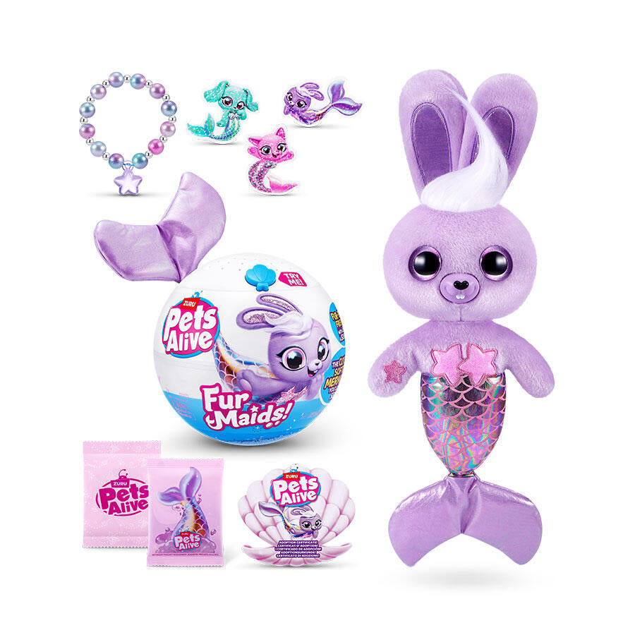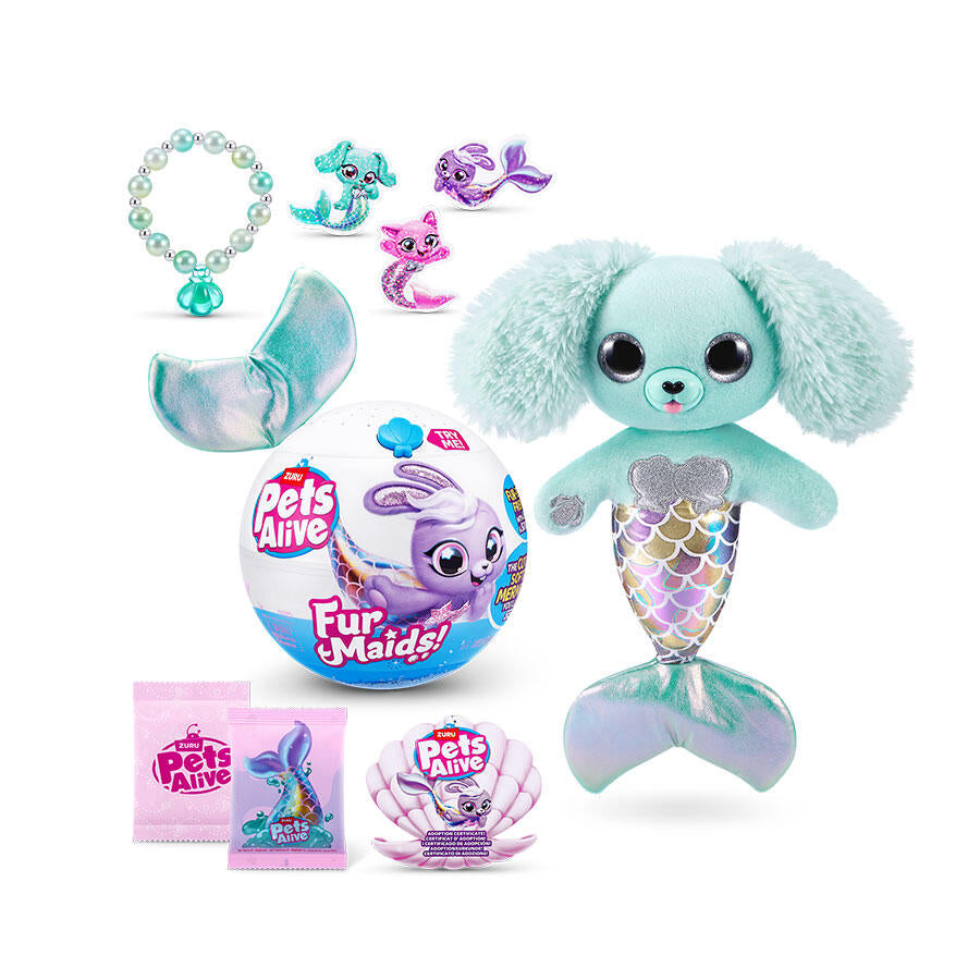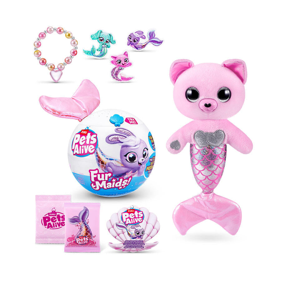 Meet the cutest trio of dazzling mermaids with Pets Alive Furmaids! Purrl, Dazzi and Starlet are ready to take you away on a mystical adventure with a touch of mermaid magic! Dive into the ultimate summer atmosphere with tropical beats and mermaid melodies. You’ll be up and dancing with your furmaid in no time! The excitement continues with over 10 surprises to unbox, including mermaid accessories for shimmering fun. Your fur-ever friends also feature sequined tails for underwater glamour! There’s so much fun to have with the cutest, softest mermaids you’ll ever sea! Which Furmaid will you adopt? Collect all 3!