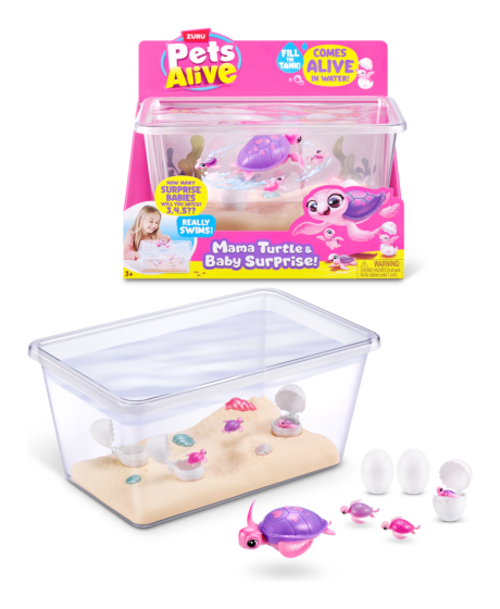 • MAMA TURTLE SWIMS: Just fill the tank with water and be amazed as Mama Turtle comes alive and swims around!