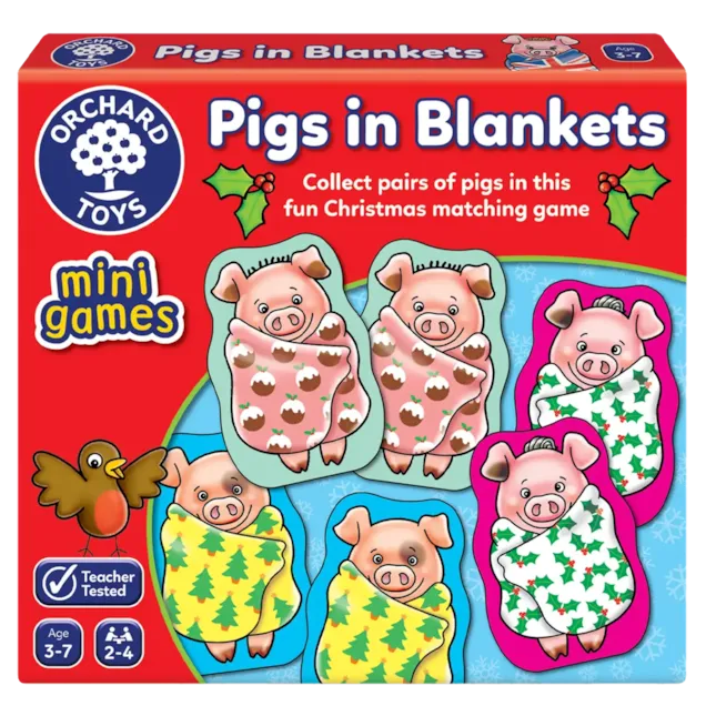 Players collect piggy pairs in this hilarious Christmas matching game, which is a perfect stocking filler for ages 3-7. Pigs in Blankets may be small in size, but it's big in value, whilst offering everything you would expect from Orchard Toys at a 'crackling' price!!