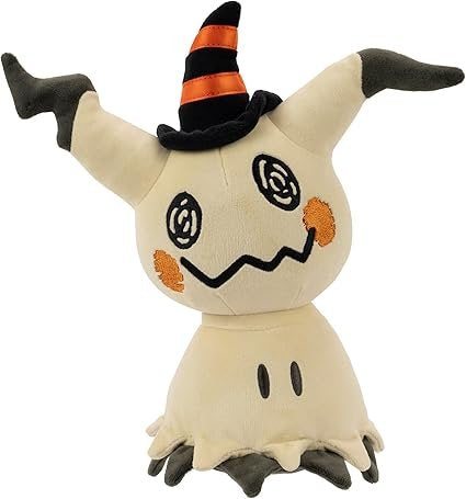 An 8-inch plush featuring Mimikyu wearing a witch hat, made from soft material. Perfect for cuddling and displaying. Officially licensed Pokémon product.