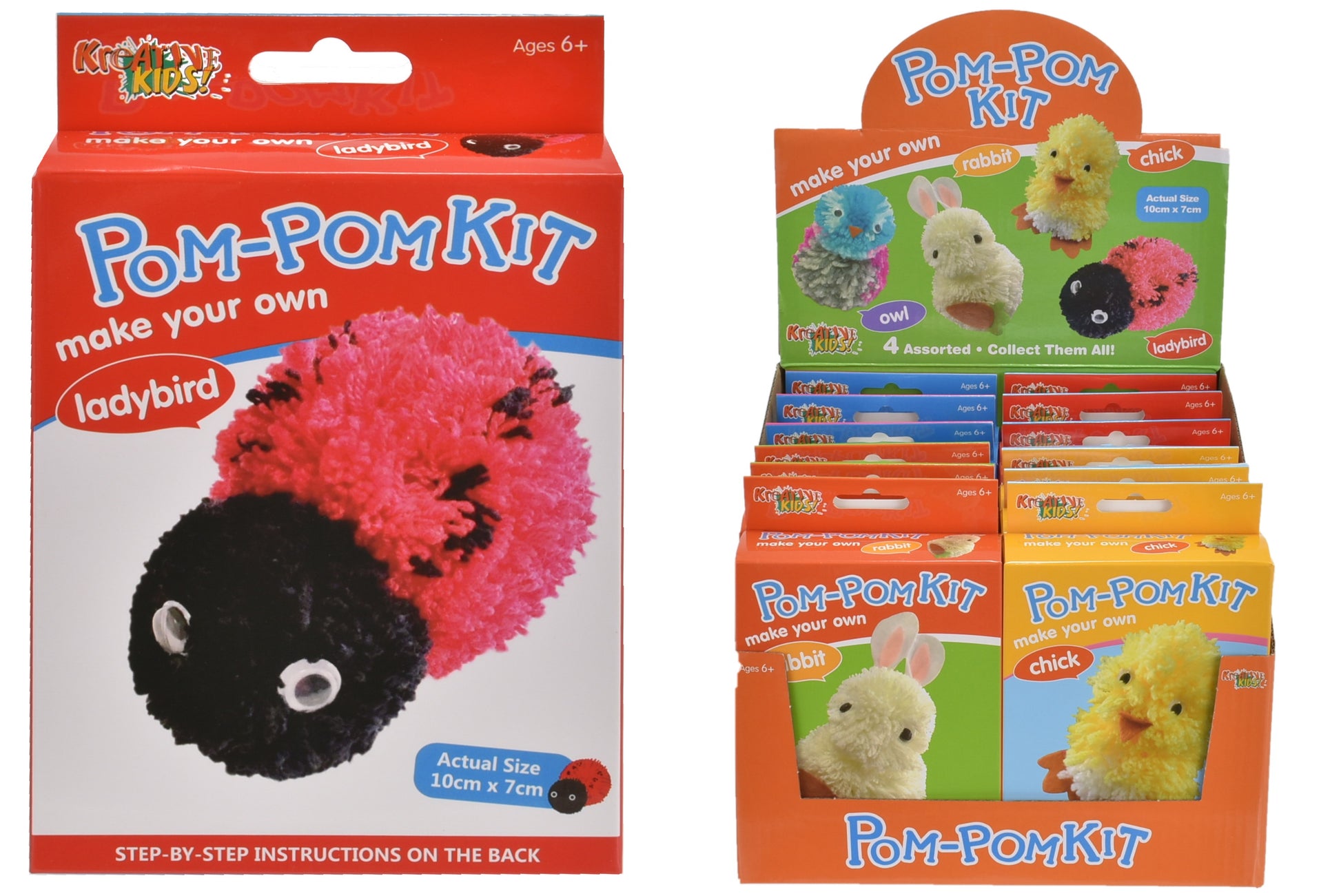 Pom Pom Kits 4 Asst is a fun and creative DIY craft kit that allows you to create colorful and fluffy pom poms in various sizes. Perfect for arts and crafts projects, this kit includes everything you need to make adorable pom poms for decorations, accessories, and more. Get ready to unleash your creativity with this engaging and easy-to-use kit!