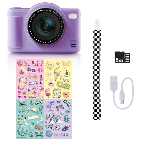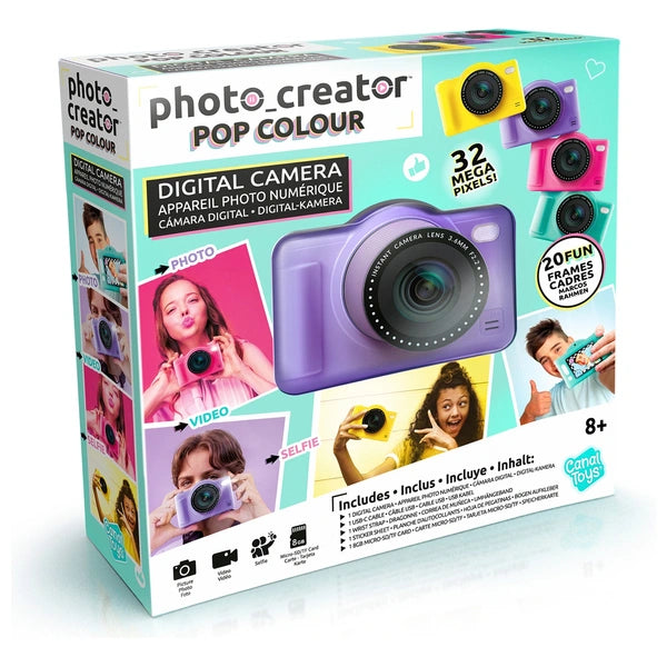 Unleash your creativity with the Photo Creator Pop Colour Digital Camera in chic purple. Perfect for kids and teens, this sleek, compact camera lets you capture high-quality images with its 32-megapixel resolution. Whether you're taking photos, recording videos, or snapping effortless selfies with the dedicated selfie lens, every moment is bound to stand out.