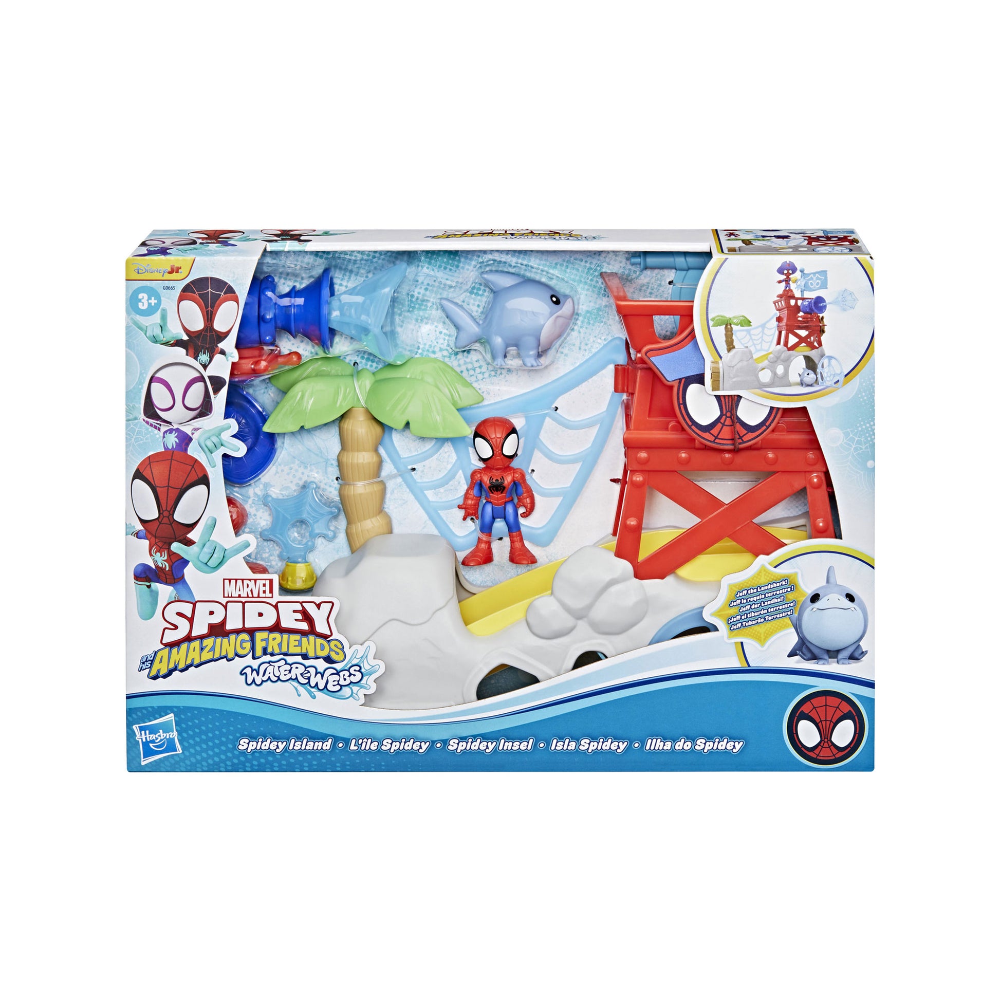 Children can imagine swashbuckling action and adventure with the Marvel Spidey and his Amazing Friends Water-Webs Spidey Island, from Hasbro! The playset comes with a poseable Spidey toy, as well as Jeff the Landshark slug figure, and features a trap door with slide, cave capture and more! Transform Spidey into Pirate Spidey with detachable pirate hat, boots and hook accessories. This set also comes with removable palm tree, flag and web cannon that the Spider-Man figure can hold with his hand for even more adventures!