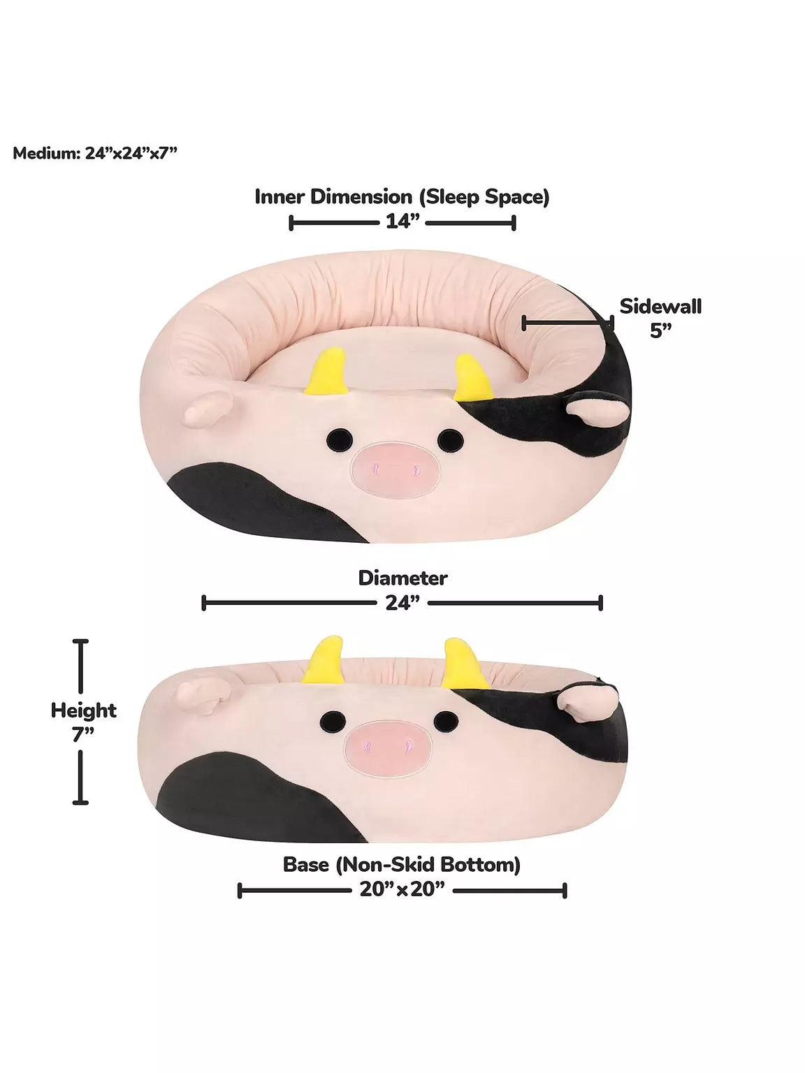 - Grow your Squishmallows Squad with this 24-inch super-soft Connor the Cow bolster pet bed.