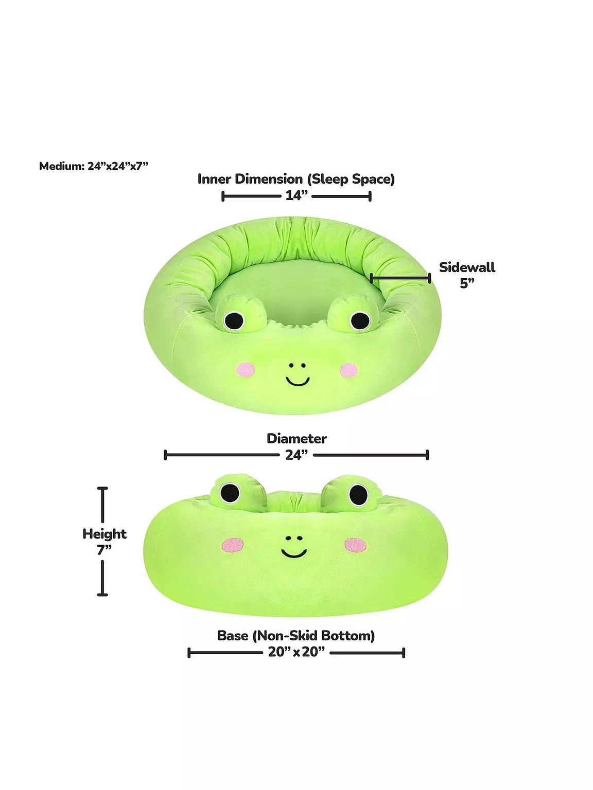 - SQUAD UP: Grow your Squishmallows Squad with this 30-inch super-soft Wendy frog bolster pet bed.