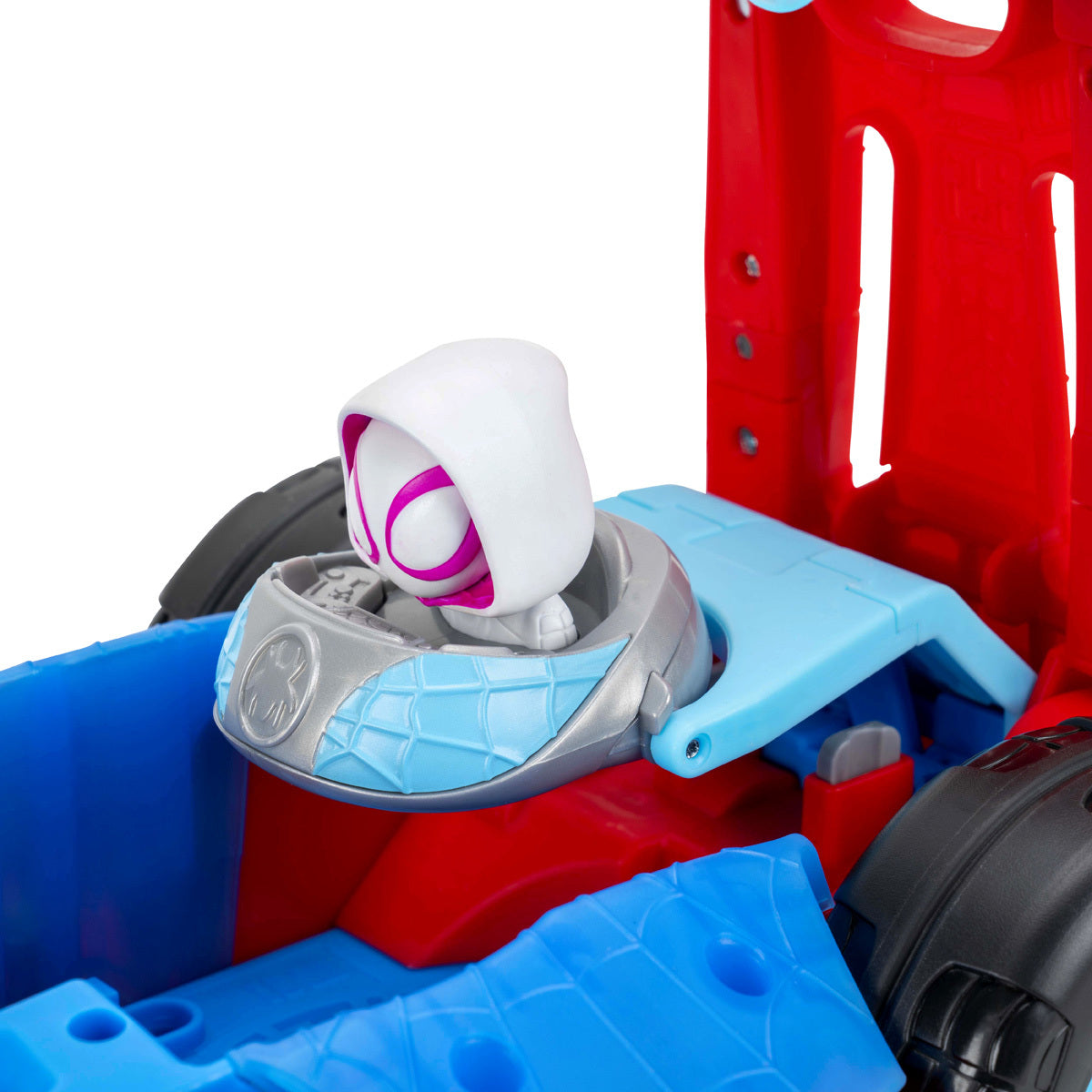 - Cruiser side reveals Spidey, Ghost-Spider, Spin, and two Web Blast Launchers.