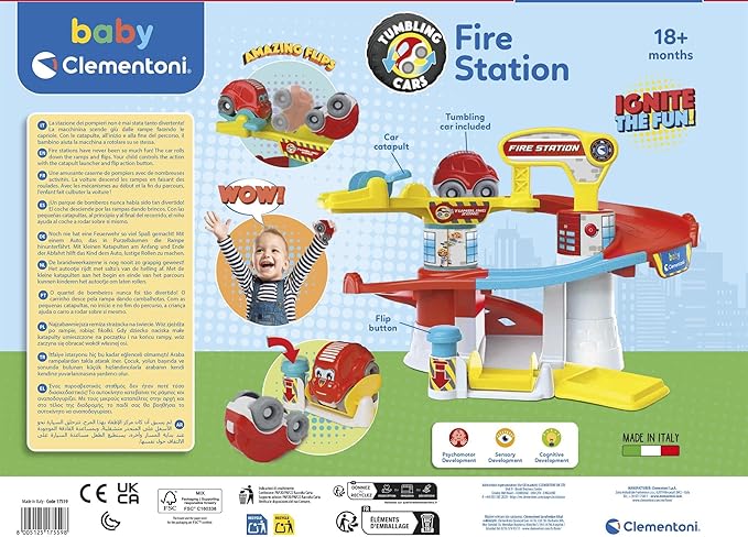 - A Fire Station with a track for racing Tumbling Cars and two “somersault” stations